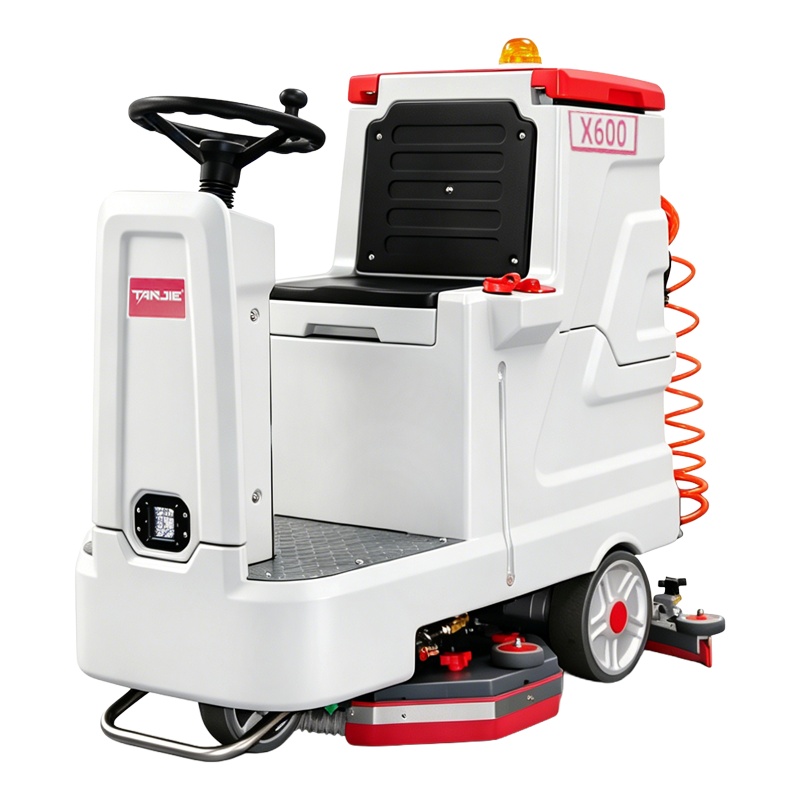 驾驶式洗地机X600产品介绍一、产品概述​产品简介:驾驶式洗地机X600整机设计美观大气,操作简单易上手,一台机器可代替8-9人,适用于物业、医院、工厂、仓库、机场、车库等小面积室内场景地面清洁作业。产品定位:适用于中大型工厂、物流仓库、商场超市等大面积硬质地面清洁场景,满足企业对高效、深度清洁的需求。设计理念:秉持人性化设计理念,注重操作便捷性与安全